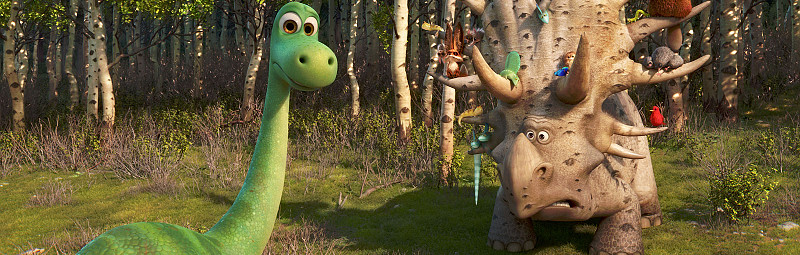 Als der Walt Disney Konzern vor knapp zehn Jahren die Pixar Animation Studios für schlappe 7.4 Mrd. USD übernahm war zu befürchten, dass die Balance verloren gehen könnte, künftige Projekte zu sehr auf Kinder abzielen und Erwachsene sich bei thematisch simpel gestrickten Geschichten langweilen würden. Ganz so schlimm wurde es nicht gab es doch mit „WALL·E - Der Letzte räumt die Erde auf“ (2008) und „Toy Story 3“ (2010) noch klasse Pixar-Filme mit Spaß für die ganze Familie. Demgegenüber stehen allerdings fade Produktionen wie „Cars 2“ (2011), „Merida – Legende der Highlands“ (2012) und dem leider nicht ans Original heranreichenden, nur mäßig unterhaltsamen Sequel „Die Monster Uni“ (2013). Geschadet hat es der unerschütterlichen Marke Pixar aber keineswegs und da 2014 ungewöhnlicherweise ein Pixar-freies Jahr war scheint der Hunger nach qualitativ hochwertig umgesetzter Computeranimation ungebrochen. 2015 stehen daher zwei Filme auf dem Kinoplan. „Alles steht Kopf“, gerade erst im Oktober in Deutschland angelaufen, hat weltweit bereits über 850 Mio. USD eingespielt (Platz 3 im internen Ranking bei bisher 15 Pixar-Animationsfilmen). Auf den Spuren der von „Jurassic World“ ausgelösten Dinomania folgt nun mit „Arlo & Spot“ Pixars nächster Streich. Darin geht es um einen Apatosaurus namens Arlo, der sich mit einem bellenden, hungrigen Menschenkind anfreundet. Dass die beiden Spezies überhaupt zur selben Zeit am selben Ort sein können liegt schlichtweg daran, dass der Meteorit vor 65 Millionen Jahren einfach an der Erde vorbeigeflogen ist.