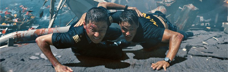 Aber das Drehbuch von Erich und John Hoeber (dürfen nach R.E.D. auch eine Geschichte für das Sequel schreiben) zieht noch eine andere Patriotismuskarte indem sie Kriegsveteranen mit einbindet. Denn nur die alten Helden, die gar nicht müde sind, können in einer hochtechnologisierten Welt den jungen Hüpfern zeigen, wie man mit museumsreifen analogen Kriegswaffen und -schiffen umgeht. Es scheint so als wolle Berg hier eine Bildungslücke schließen und der statusupdatorientierten Facebookgeneration Wertschätzung für die Leistungen abringen, die tapfere Männer für Amerika und die übrige Welt in der Vergangenheit unter Einsatz ihres Lebens erbracht haben. Leider geschieht das hier mit einer nervigen Holzhammermethodik, die eingehüllt von überbordenden Spezialeffekten früh nervt, vor allem weil inhaltlich nichts überraschendes passiert. Versucht Berg hier Michael Bay zu imitieren scheitert er kläglich, denn immerhin bewahren dessen Filme trotz ihrer Oberflächlichkeit i.d.R. noch ihr Unterhaltungspotential. Da mag sich mancher über Rekrutierungsbotschaften oder Werbeclipästhetik noch so aufregen.