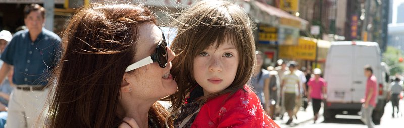 Henry James war ein amerikanischer Schriftsteller (1843-1916). U.a. hat er knapp zwei Dutzend Romane geschrieben von denen sehr viele auch fürs Kino und noch mehr fürs Fernsehen verfilmt wurden. Am bekanntesten sind wohl „Portrait of A Lady“ (1996) mit Nicole Kidmann, „Die Flügel der Taube“ (1997) mit Helena Bonham Carter und „The Golden Bowl“ (2000) mit Kate Beckinsale. Nun haben sich zwei Drehbuchautoren eines Stoffes von James aus dem Jahre 1897 („What Maise knew“) angenommen, mit persönlichen Erfahrungen aufgepeppt und das Ganze weit weg vom Kostümdrama ins heutige New York verlagert. Das Regieduo McGee/ Siegel (Uncertainty) hat es dankbar aufgenommen und ein Melodrama inszeniert bei dem das Kind im Mittelpunkt steht. Diese Rolle übernimmt Onata Aprile, ein frisches Gesicht im Filmbusiness. Ihre Mutter im Film spielt Julianne Moore (The Kids are alright, Boogie Nights), die kürzlich auch als Sarah Palin in einem TV-Film zu sehen war. Eine sehr unsympathische Person spielt sie hier, eine Rockmusikerin, die lieber mit ihren Bandkollegen abhängt als sich um ihre Tochter Maisie zu kümmern. Sporadische sentimentale Anwandlungen und wenn es ums Sorgerecht/Besuchsrecht geht lassen dann allerdings die Muttergefühle kurzfristig hervorquellen.