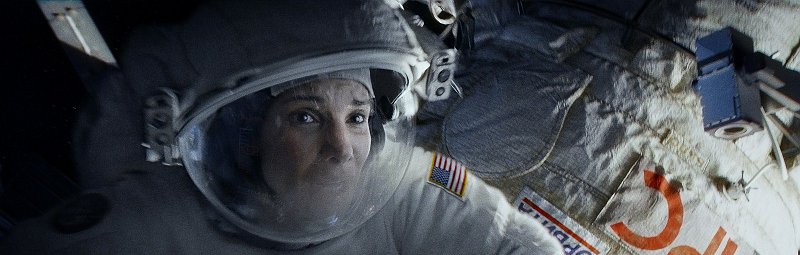 Denn wenn der Film beginnt und man das Gesprochene, die Kommunikation der Astronauten untereinander und mit ihrer Basisstation auf der Erde nicht versteht, möchte man sich fast schon beschweren doch dann langsam aber stetig, wenn wir geduldig bleiben und den Fortschritt im Bild sehen, die Protagonisten uns langsam näherkommen, verstehen wir immer mehr. Akustisch und inhaltlich. In vielen langen Plansequenzen faszinieren uns die Bilder von Cuaróns mexikanischem Landsmann Emmanuel Lubezki, der den Zuschauer „ungeschnitten“ durch den Weltraum schweben lässt – so intensiv hat man das noch nicht erlebt. Wie in einem sich immer schneller drehenden Strudel werden wir mitgerissen und können die Hilflosigkeit, die Angst vor dem Verlorensein in der Schwerelosigkeit, der Einsamkeit dort oben weit vom Heimatplaneten entfernt, wo einen niemand schreien hört, gut nachvollziehen. Denn was kann man tun, wenn der Kommunikationssatellit zerstört und der Zugang ins eigene Spaceshuttle unmöglich ist ? Mit Sandra Bullock und George Clooney haben wir in diesem Zwei-Personen-Drama glaubwürdige Protagonisten vor Augen mit denen wir ums Überleben zittern, denn wer würde schon gerne hoffnungslos im Astronautenanzug und endlichem Sauerstoffvorrat durchs Weltall driften ? Und die Kälte ...