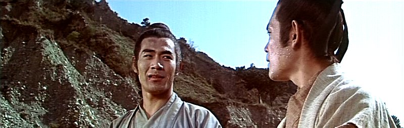 Und von Schwertkampfaction gibt es massig, knapp ein Dutzend Auseinandersetzungen sind gleichmäßig über die 84 Minuten Laufzeit verteilt. Die Schwerkraft wird dabei immer mal wieder außer Kraft gesetzt, sind die Akteure doch in äußerst sprunggewaltiger Form. Fast ausschließlich wird vor Naturkulisse gekämpft was die kostengünstigere Variante zu Studiobauten ist wie wir sie von unzähligen Shaw-Brothers-Filmen kennen. Auch wenn der Bodycount hoch ist (besonders deutlich sichtbar nach einem Gemetzel in einem Wirtshaus), sind die Todeskämpfe relativ blutarm, nur den letzten Kampf gegen den stets diabolisch lachenden Oberschurken gestaltet man diesbezüglich etwas spektakulärer. Ruhemomente gibt es kaum im Film, auf eine Lovestory wird ganz verzichtet, auch wenn die zweite weibliche Rolle, Han Hsiang-Chin spielt die Schwester von Cheng, durchaus Optionen bieten würde. Stattdessen sehen wir ein kampflustige junge Frau, die furchtlos Bruder und Mutter verteidigt. Ihre Lieblingswaffe dabei die Peitsche. Wie präzise sie damit umgehen kann zeigt sie in einer Szene, die bei einer Video-Veröffentlichung in England wohl geschnitten wäre: Sie reißt einem umherlaufenden Huhn mit einem Peitschenschlag den Kopf ab. Die blinde Mutter hat übrigens auch noch was zu bieten. Frei nach Zatoichi prügelt sie mit einem langen Stock ihre ungezogenen Angreifer windelweich.