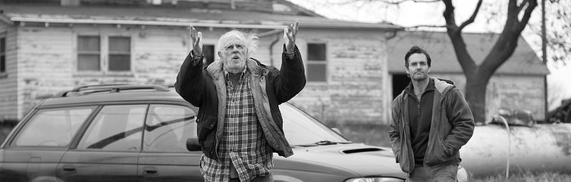 Bestimmt ist fast jedem schon einmal die Nachricht über tolle (angebliche) Gewinne in den Briefkasten geflattert. Ob Autos, Immobilien, Schmuck oder Geld. Man habe gewonnen … und dann steht im Kleingedruckten irgendetwas, dass den (oft im Ausland sitzenden) Veranstalter dagegen absichert tatsächlich den Gewinn auszugeben. Jeder vernünftige Mensch schmeißt diese Mitteilung ja weg und kümmert sich nicht weiter darum. Independent-Filmer Alexander Payne nimmt das zum Anlass ein Roadmovie zu drehen und gleichzeitig eine Vater-Sohn-Beziehung zu analysieren bei der einiges im Argen liegt. Überhaupt hätte der Vater mit seiner eigenen Sippe und der weitergehenden Verwandtschaft einiges aufzuarbeiten. Payne, der in seinen bisherigen Filmen mit Stars wie George Clooney (The Descendants, sein bisher größter Hit!), Jack Nicholson (About Schmidt) und Reese Witherspoon (Election) arbeitete stellt diesmal den 77-jährigen Bruce Dern ins Rampenlicht. Dern, Vater von Schauspielerin Laura Dern (mit der arbeitete Payne vor vielen Jahren auch einmal), ist dem Westernfan natürlich durch Filme aus den 60ern und 70ern bekannt. U.a. mit Clint Eastwood, John Wayne, James Garner und Robert Redford hat er gedreht. In Alfred Hitchcocks letztem Film „Familiengrab“ (1976) spielte er die Hauptrolle. Eine echte Hausmarke für eine breitere Masse wurde er aber trotz Oscarnominierung 1979 nie. Tarantino besetzte ihn 2012 in einer kleinen Rolle für „Django Unchained“ und hatte vor ihm eine Hauptrolle in seinem nächsten Film zu geben (das Projekt ist aber erst einmal geplatzt).