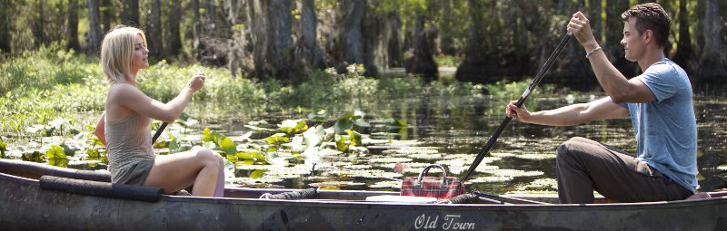 Die 24-jährige Julianne Hough, die bereits zwei Hauptrollen in nicht gerade kleinen Filmen vorzuweisen hat (das „Footloose“-Remake sowie „Rock of Ages“ an der Seite von Tom Cruise), spielt die junge Frau, die sich vor der Polizei fürchtet. „Transformers“-Star Josh Duhamel, kein Unbekannter im Romantikfach (Total verknallt in Tad Hamilton, When in Rome) übernimmt den Job des netten Ladenbesitzers, der nach dem Tod seiner geliebten Frau alleine für seine beiden Kinder sorgen muss. Alex, so heißt er, hat sich aber seine Fröhlichkeit bewahrt – auch wenn sein Junge manchmal bockt - und versucht bald den scheuen, attraktiven Neuzugang im Städtchen ganz ohne Hintergedanken beim Einleben zu unterstützen. Sie nennt sich Katie, findet auch schnell einen Job als Kellnerin im Restaurant um die Ecke und ein kleines abgelegenes Häuschen im Wald. Ein toller Ort, alles nette Leute, Sympathie weit und breit. Aber keiner darf Katies Geheimnis erfahren, das natürlich irgendwann die unvermeidliche Romanze zwischen ihm und ihr auf die Zerreißprobe stellt. Wirklich vorstellen, dass die junge Frau, die ohne Gepäck reist, eine böses Mädchen ist kann man sich aber nicht. Soviel Schuld würde Sparks doch nicht seiner Heldin aufbürden, oder ? Jedenfalls schneidet Hallström zwischen all der zunehmenden Gefühlsduselei immer mal wieder zu dem Jäger von Katie, einen Polizisten, der wie besessen davon ist sie zu finden und dabei auch Vorschriften ignoriert.