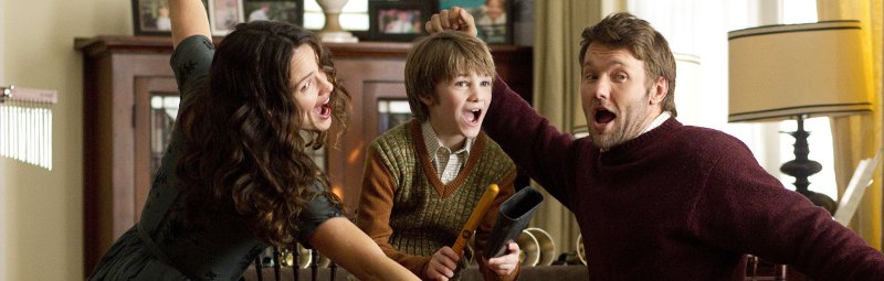 Es ist Disneyzeit und es geht um Familie, um einen kleinen Jungen und das zusätzliche Fantasyelement bringt den Schnellfreifahrtschein ins Kitschland. Ja, es geht darum Wünsche zu erfüllen, Traurigkeit zu vertreiben und angespannte Familienverhältnisse zu entspannen. Den Weichspüler in der Hand hat Peter Hedges, der nach 2003 (Pieces of April) und 2007 (Dan – Mitten im Leben!) nun zum dritten Male Regie führt und auch wieder selbst das Drehbuch geschrieben hat. Abonniert auf solche Tränendrüsenfilme ist er eigentlich nicht, schließlich stehen in seiner Vita auch Drehbuch-Credits zu „Gilbert Grape – Irgendwo in Iowa“ und „About a Boy“. Nun gut, das Kind ist aus dem Garten gefallen und freundet sich gleich mit einem ein paar Jahre älteren Mädchen an (Odeya Rush), das in der Schule einen Außenseiterstatus hat und mit Timothy auf der gleichen Wellenlänge schwingt. Die frischgebackenen Eltern also gleich mit pubertären Wandlungen konfrontiert ? Dabei haben sie selbst noch andere Probleme. Die Firma von Daddy-auf-Zeit Jim (Edgerton), hat Absatzschwierigkeiten. Ein neuer Bleistift (das produzieren sie nämlich) könnte die Rettung bringen und natürlich ist es … na ? … Timothy, genau, der Jim ermutigt die irre Idee umzusetzen und in der Freizeit einen Prototyp anzufertigen. Eine andere Mission ist es noch Jim mit seinem Dad (undankbare Rolle für David Morse) zu versöhnen. Und Opa muss mal wieder herzhaft lachen …